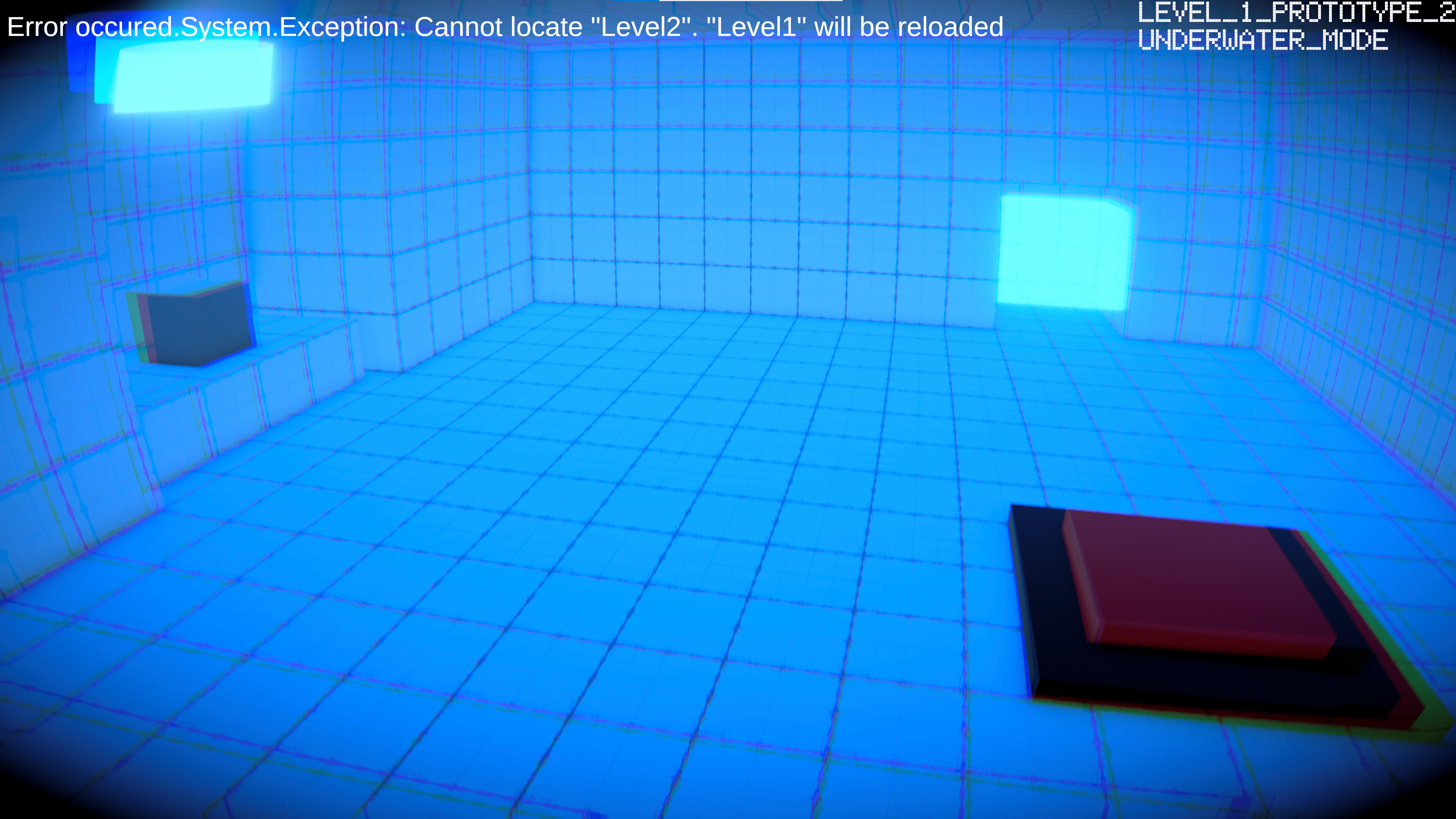 In our game set in a space station laboratory, a system error causes the game to reload with strange glitches after the first level is completed.